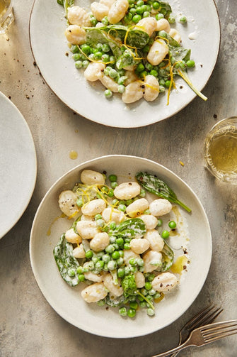 Gnocchis au citron avec petits pois et épinards